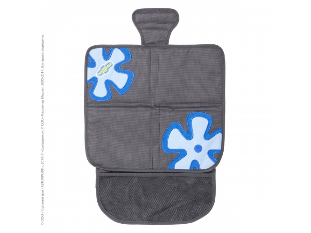 Оригинальная накидка позволяет использовать бустер, не испортив автомобильное сиденье. Прочный материал защищает от вмятин, дырок и загрязнений. Для более надёжной фиксации в накидке используется специальный язычок и антискользящее покрытие на тыльной стороне. Яркие весёлые рисунки отлично сочетаются с такими же позитивными детскими автокреслами «Смешарики». Наличие удобного сетчатого кармана в накидке под детское автокресло делает его более функциональным.