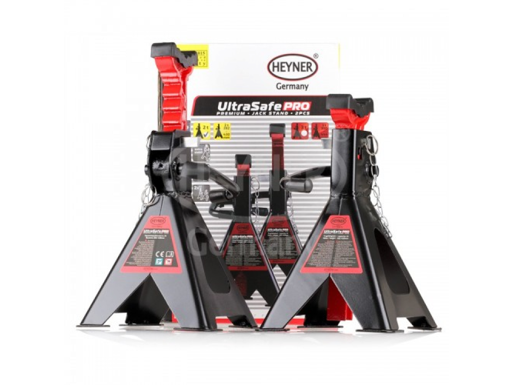 Опора реечная (подставка) для страхования авто, грузоподъемность 2 т., стабильная зубчатая рейка с 10-позиционной регулировкой, защитная резиновая прокладка, высота подъёма: 282 - 430 mm