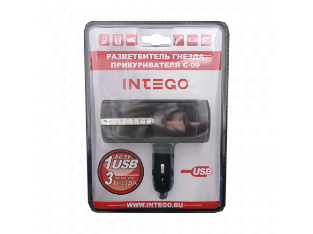 Разветвитель гнезда прикуривателя (12/24 В) на 3 входа с максимальным суммарным током нагрузки 10 А + зарядное устройство с 1 USB входом (5 V / 1000 mA).