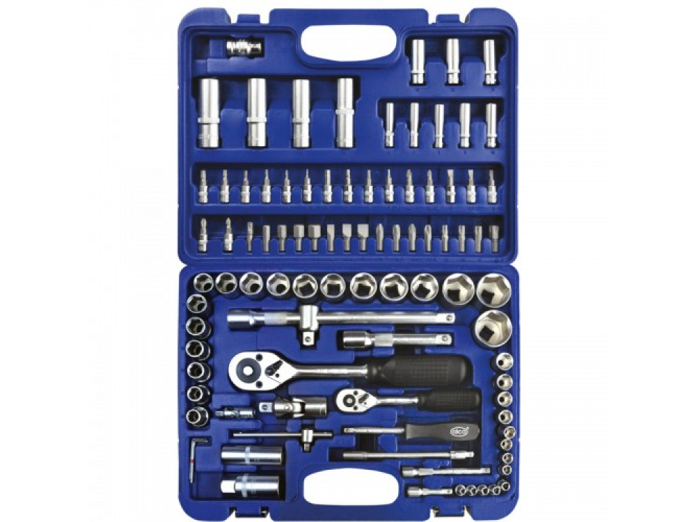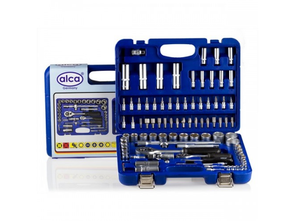 Набор головок, 95 предметов. [?] 18 — шестиграных головок 10-32 мм. 4 — длинных шестиграных головок 14-19 мм. 2 ключа для свечных головок 16 мм и 21 мм. 2 — удлинителя 12 см. и 25 см. 1 — карданный шарнир. 1 — держатель бит. 1 — трехкратный адаптер. 15 бит - (-) 8-12: (+) 3,4: (H) 8-14: (T) 40-50. 1 — адаптер для бит. 3 — шестигранных ключа1.5, 2, 2.5 мм. [?] 13- шестигранных головок 4-14 мм. 8 — длинных шестиграных головок 6-13 мм. 2 — удлинителя 5 см. и 10 см. 1 — карданный шарнир. 1 — трещётка. 1 — рукоятка с внутренним и наружним квадратом. 17 бит - (-) 4-7: (+) 1,2: (H) 3-30. 1 — гибкий удлиннитель 15 см. 1 — Т образная скользящая рукоятка для шестигранных головок. Качественная ванадиевая сталь. Крутящий момент +15%. Крепкий инструментальный ящик.