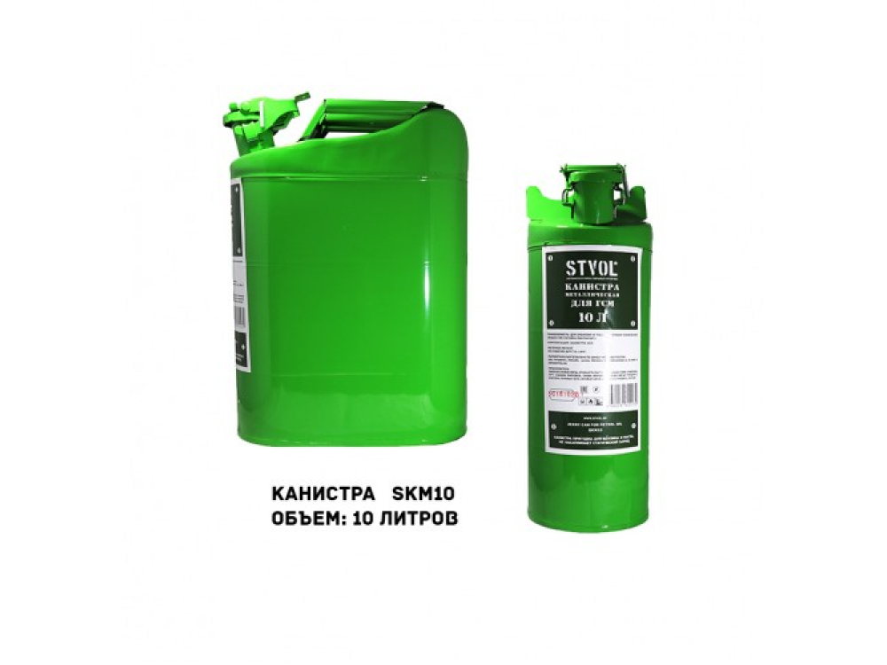 Канистра металлическая 10 л STVOL SKM10 предназначена для хранения и транспортировки бензина, дизельного топлива.