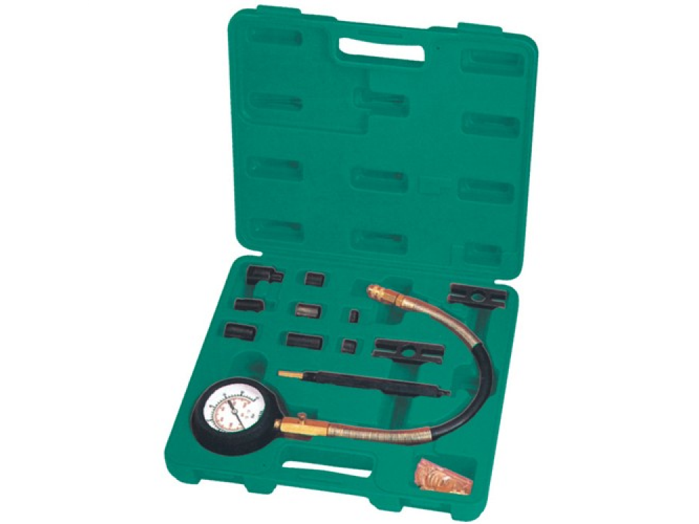Компрессометр применяется для контроля состояния деталей цилиндро-поршневой группы и ГРМ дизельных двигателей грузовых автомобилей. Прибор комплектуется большим 100 мм манометром в ударопрочном, обрезиненном корпусе. Манометр рассчитан на измерение давления в диапазоне 0 - 60 кгс/смкв.. Соединительный, армированный шланг высокого давления, длиной 355 мм, имеет быстросъемный переходник для соединения с форсуночным адаптером.