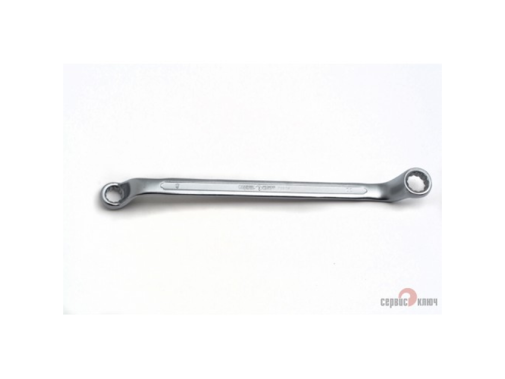 Двусторонний накидной ключ со смещением. Имеет на обоих концах 12-гранные накидные профили. Накидной профиль со смещением предоставляет более широкие возможности при работе в ограниченном пространстве. Изготовлен из высококачественной хромованадиевой (Crv) стали методом холодного штампа, тверность 40-45 HRC.