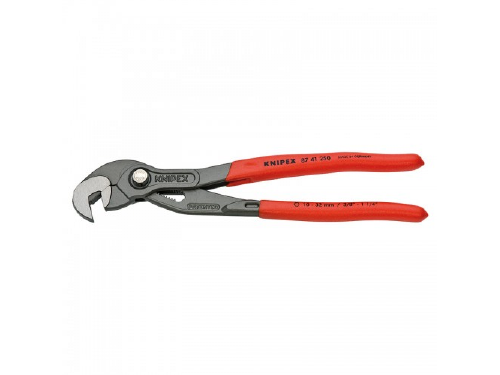 Долгий срок службы: изготовлены из хром-ванадиевой электростали - кованой и закалённой в масле для длительного срока эксплуатации переставных клещей Knipex KN-8741250. Эргономичность: инструмент имеет эргономичную форму ручек с нескользящим пластмассовым покрытием, которое обеспечивает комфортную работу. 15 позиций установки; Небольшой вес (328 г); Идеальный вариант для законтривания; Для гаек и винтов с размером ключа 10 - 32 мм (3/8" - 1 1/4" дюймов); Самофиксирующиеся в пределах от 17 до 32 мм; Полированная головка. Специальный механизм предотвращает случайное защемление пальцев; Заменяет полный набор гаечных ключей; Коробчатый шарнир; Точная регулировка одной рукой.