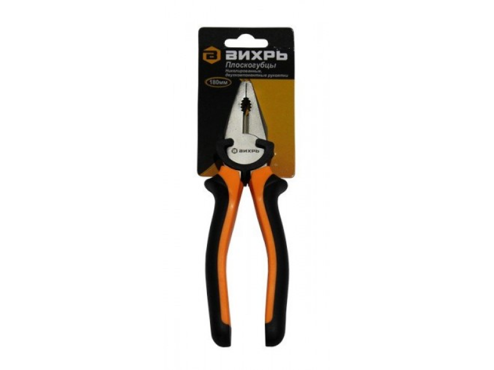 Плоскогубцы ВИХРЬ 180мм - удобный инструмент для слесарно-монтажных работ. Лезвия никелированные, рукоятки из двухкомпонентного материала и не скользят в руках. Эргономичная конструкция обеспечивает надежный захват деталей.